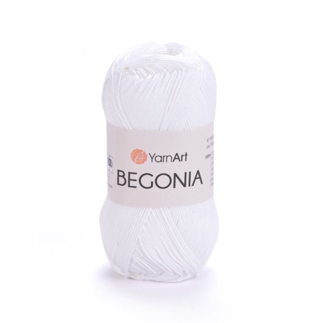 Пряжа Yarnart Begonia белоснежный 1000 изготовлена из 100% мерсеризованного хлопка. Смотана в небольшие мотки, нитка средней толщины с глянцевым отливом, подходит для крючка и для спиц. Пряжа Yarnart Begonia белоснежный 1000 идеально подойдет для изделий летнего гардероба.