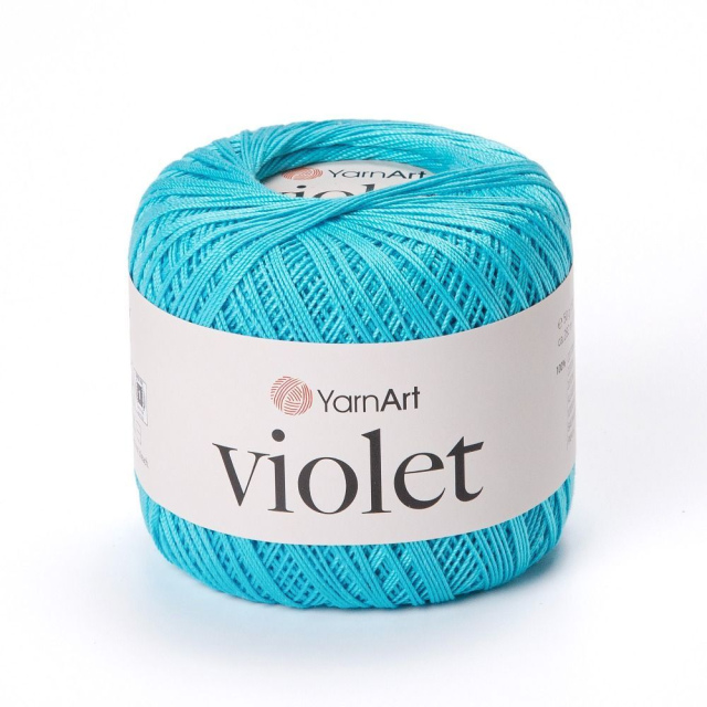 Пряжа Yarnart Violet бирюза 8 изготовлена из 100% мерсеризованного хлопка. Не линяет, а также не выгорает на солнце, отлично впитывает влагу, что позволяет вязать из этой пряжи изделия, контактирующие с телом. Пряжа Yarnart Violet бирюза 8 не скатывается, и очень проста в уходе, её можно стирать в стиральной машинке