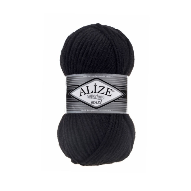 Пряжа Alize Superlana Maxi черный 60 состоит из 25% шерсти и 75% акрила. Довольно толстая, обемная и теплая пряжа. Отлично подходит для вязания теплых вещей на зиму и осень. Пряжи Superlana Maxi черный 60 отлично держит форму, не выцветает и не скатывается.