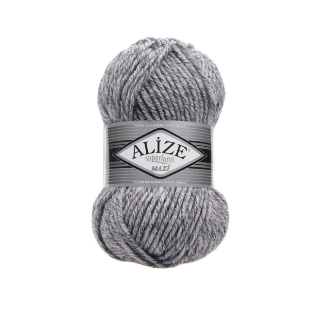 Пряжа Alize Superlana Maxi серый жаспе 801 состоит из 25% шерсти и 75% акрила. Довольно толстая, обемная и теплая пряжа. Отлично подходит для вязания теплых вещей на зиму и осень. Пряжи Superlana Maxi серый жаспе 801 отлично держит форму, не выцветает и не скатывается.