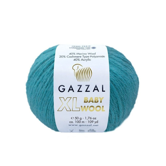 Пряжа Gazzal Baby Wool XL светло-бирюзовый 832XL, имеет в своем составе шерсть мериноса, искусственный кашемир и акрил. Не колючая, мягка и приятнвя на ощупь пряжа. Отлично подойдет для вязания тёплых вещей детям и взрослым с кожей, чувствительной к шерсти. Нитка у пряжи Gazzal Baby Wool XL светло-бирюзовый 832XL равномерно скручена, отлично ложиться в любые узоры, прекрасно держит форму и не поддается сильной деформации.